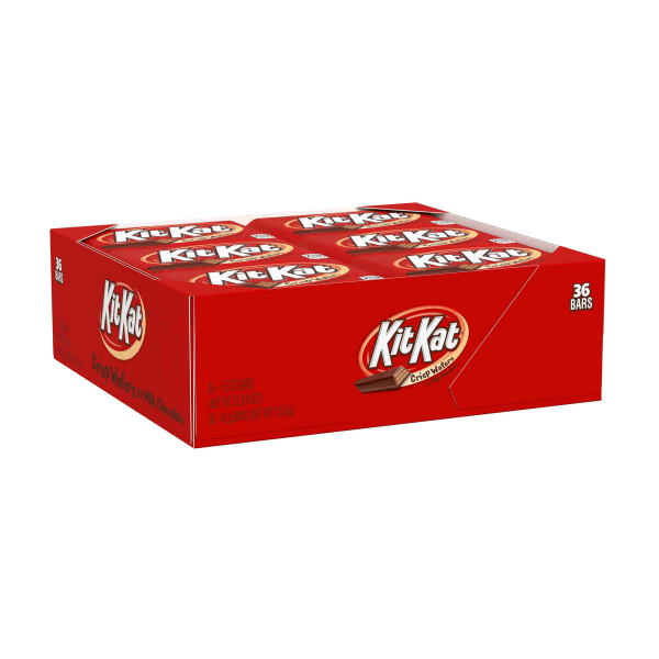 Ready for a classic everyone hopes to find in the candy selection? These bulk full size KIT KAT? candy bars are individually wrapped for optimal convenience easy sharing and lasting freshness. Whether you gift them to friends pass them out in the office or hold onto them for snacking moments you can expect a delicious treat in the perfect size. Throw one in your lunch box to treat yourself to a sweet dessert or stock your home and office candy selections with an easy snacking classic.