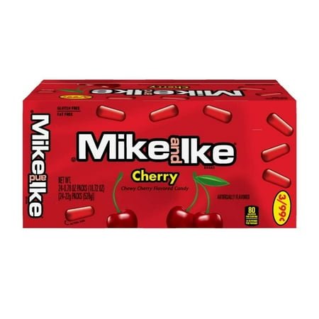 Finally an ALL CHERRY package of Mike and Ikes!!! Just Born a family-owned candy manufacturer has been in business since 1923. They make some of the most beloved and iconic candy brands including MIKE AND IKE Original Fruits chewy assorted fruit flavored candies which were introduced in 1940. Case Contains: 24 – 0.78-oz. boxes Kosher Certified Parve Gluten Free Fat Free Follow All City Candy on Social Media: Facebook | Instagram | YouTube | Pinterest Nutrition Ingredients: Sugar corn syrup modified food starch contains less than 2% of the following: Citric acid malic acid fumaric acid sodium citrate natural and artificial flavors dextrin confectioner s glaze carnauba wax medium chain triglycerides red 40. Ingredients and nutritional information provided by manufacturer and considered accurate at time of posting. Refer to produce labeling or contact manufacturer directly for current data.